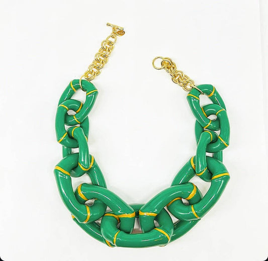 "The Michelle"- Bamboo Link Necklace - Green